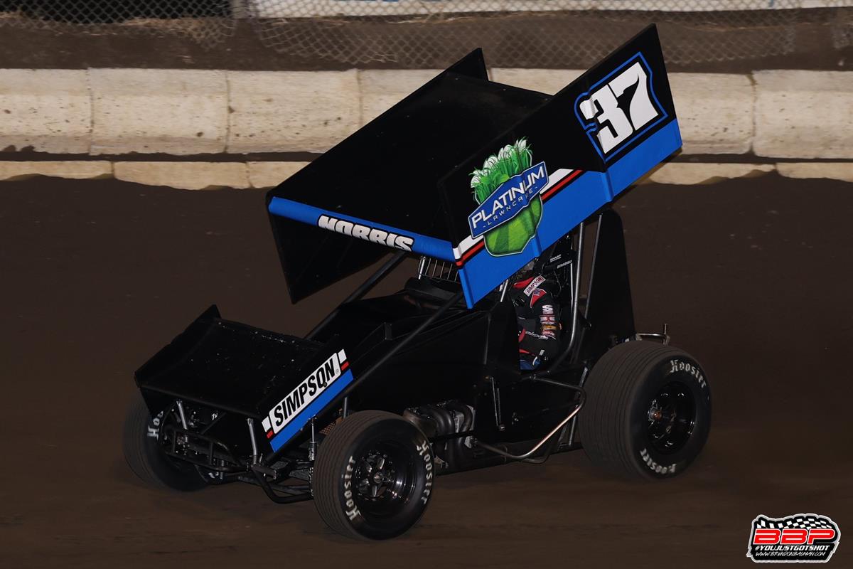 Norris came out swinging in the opener of the Illinois doubleheader, leading all eight laps of his heat and taking the win by nearly three seconds. In the feature, he rolled off from the fourth starting spot and quickly worked his way forward, climbing into second by lap 12. He took over the top spot on lap 21 and led the final five circuits, holding off Kory Weyant and Mario Clouser, who rounded out the podium.